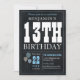 13th Birthday Chalkboard Blue Balloon Rustic Chic Invitation
