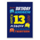 13th birthday name personalized birthday kids block graphic aliens electronic gaming style card. Crazy pixel graphic monster aliens and your own name and age in orange, white, cyan blue, and yellow. Personalize with your child's name currently reads George 9, other name lengths and ages are available if you need assistance please contact me, happy to post one for your name. Matching gift wrap and other items also available. Art and design by www.mylittleeden.com