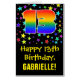 The front of this exciting, vibrant, and cheerful birthday themed greeting card design features a large number “13” having a rainbow spectrum gradient inspired pattern. It also features the message “Happy 13th Birthday,”, and a personalized recipient name. The front additionally features a colorful background pattern of star shapes of various sizes. The inside features a custom birthday greeting message, or could perhaps be cleared and left blank if a message is to be written by hand instead. A customizable birthday card like this might be a fun way to send a message in celebration of somebody’s thirteenth birthday. [~Z0000527]