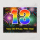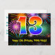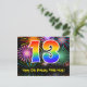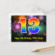 13th Birthday – Fun Fireworks Pattern + Rainbow 13 Postcard