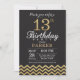 13th Birthday Invitation Black and Gold Glitter
