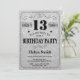 13th Birthday Invitation Black and Silver Glitter