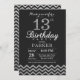 13th Birthday Invitation Black and Silver Glitter