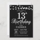 13th Birthday Invitation Black and White
