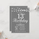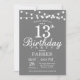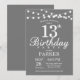 13th Birthday Invitation Gray and White