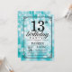 13th Birthday Invitation Teal Glitter