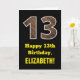13th Birthday: Name, Faux Wood Grain Pattern "13" Card