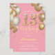 13th Birthday Pink and Gold Balloons Confetti Invitation