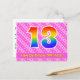 13th Birthday: Pink Stripes & Hearts, Rainbow 13 Postcard