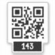 The image depicts a QR code with the number "143" written beneath it. The QR code is a black and white square pattern with a series of squares arranged in a grid-like pattern. The number "143" is written in a bold, black font. The number "143" has an encoded message of 'I Love You', especially used on pagers back in the 1990s.