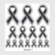 14 medium Chrome Style Print Black Ribbon Awareness stickers. A one of a kind... multiplied by 14! Great for sharing at an event or reunions.