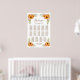 This sunflower and rose floral seating chart will help your guests find their table. It is suitable for a wedding with 14 tables and up to 140 guests.