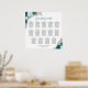This stunning 14 table wedding seating chart will elevate the beauty and charm of your special day, while making it easy for your guests to find their tables! With a rustic boho chic floral design, this seating chart showcases hand painted watercolor roses, eucalyptus leaves and garden foliage in shades of teal, turquoise, aqua, and cyan. The elegant script calligraphy title and seating assignments for 140 people with 10 seats per table, make it easy for your guests to find their seats, while adding a touch of sophistication to your wedding reception. Make your big day even more unforgettable with this beautiful seating chart!