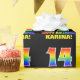This colorful, fun, and cheerful birthday themed wrapping paper design features a large number "14" and the message "HAPPY BIRTHDAY,", both colored with a rainbow spectrum gradient inspired pattern, along with a bold yellow personalized recipient name. The background is colored black. Fun birthday themed wrapping paper like this may be used to wrap a gift or present being given to somebody who is celebrating their fourteenth birthday. [~Z0000475]