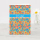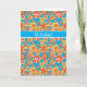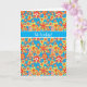 A 14th Birthday Card with an all-over pattern of red, orange, yellow flowers on a bright turquoise background, from a handpainted paper collage by Judy Adamson.