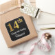 This stylish, luxurious, and elegant birthday sticker design features a large ordinal number “14th” having a faux/imitation gold-like look, in addition to the birthday greeting message “Happy 14th Birthday,” and an editable name in a script-style font. The background is colored black. Luxurious birthday-themed stickers like this may be used when wrapping a gift or present being given to celebrate somebody’s 14th birthday, or perhaps may be handed out to the guests at a birthday party or celebration. [~Z0000517]
