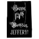 This fancy and formal birthday themed gift bag design features the message “Happy 14th Birthday,” in elegant script style text, on a black colored background. It also has a customizable recipient name. A birthday themed gift bag like this might be a respectable way to wrap a gift or present being given to celebrate somebody’s fourteenth birthday. [~Z0000557]