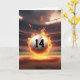 Flying baseball with flames on a ball field in a stadium for 14th birthday.