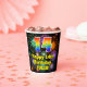 This joyful and fun birthday-themed paper cup design features a large number “14” having a rainbow spectrum gradient inspired pattern. It also features the message “Happy 14th Birthday,”, and an editable name. The background features a vibrant and colorful pattern inspired by the look of bursting celebratory fireworks. Colorful, vibrant paper cups like this might be fun to have at a birthday party being held in celebration of somebody’s 14th birthday. [~Z0000539]