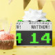 This fun and nerdy birthday wrapping paper design features a large green vintage video gaming style number "14" on a black colored background. It also features the birthday greeting message "Happy 14th Birthday,", and a name that can be edited. Birthday themed wrapping paper like this might be a fun way to wrap a gift or present being given to somebody who is celebrating their fourteenth birthday. [~Z0000403]