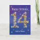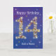 14 in Stars - Age Number - Fourteenth Birthday Card - Blue Background - Customizable Text