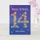 Customizable text: inside card: Wishing You a Very Happy 14th Birthday.