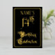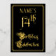 The front of this opulent, fancy, foil fourteenth birthday celebration invitation design features the message “14th Birthday Celebration” in elegant script-style text. It also features an editable name. The background of the front is colored black by default (although it can be customized to a different color). The back features personalized details about the event, such as the date, time, location, and any other relevant information. Elegant, luxurious, customized invitations like these might be used to invite guests to a birthday party/celebration being held to honor somebody’s fourteenth birthday. [~Z0000589]