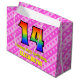 14th Birthday: Pink Stripes & Hearts, Rainbow # 14 Large Gift Bag