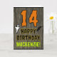 The front of this spooky and scary Hallowe'en birthday themed greeting card design features a large number "14", along with the message "HAPPY BIRTHDAY,", and a personalized name. There are also depictions of a ghost and a bat on the front. The inside features an editable birthday greeting message, or could perhaps be cleared and left blank if a message is to be written by hand instead. A customizable birthday card like this might be a fun way to acknowledge somebody’s fourteenth birthday that also falls on Halloween (October 31st). [~Z0000410]