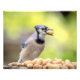 A blue jay with a peanut in his beak, sitting behind a pile of peanuts. This image was taken in Ticonderoga, NY (the Adirondacks) by Debbie Quick of Debs Creative Images. To see more photography by Debbie, check out her website at: www.debscreativeimages.com