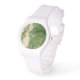 I only have one complaint. I ordered the watch with clear case and strap, and what was sent was white case and strap. I'm going to keep it because 1) it looks very nice in white, and 2) it would take too long to get a replacement made and sent in time for my occasion. Aside from the mix up with the color, the watch does look very good in white. The purple dial is actually sparkly which did not show in the online images. That was a nice surprise. If you like Swatch watches this is very similar to those. It's 33.6mm in diameter, 10.5mm thick, and 40.6mm lug to lug. Stainless steel case back says 3ATM/30m WR, so no swimming or showering or submerging this one. If you like Woodstock, this is a great choice.