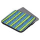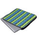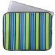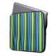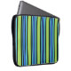 An eye-catching 15-inch Laptop Sleeve, with a deckchair-striped pattern in Dazzling Blue, Neon Green, Turquoise and Black. part of the Posh & Painterly 'Blue Moons' collection, the design is from a hand-painted paper collage by Judy Adamson.