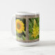 Get your day off to a great start with a coffee mug containing an inspirational message and photos of cheerful sunflowers and a red hot poker surrounded by a border made from the unique patterns found in tree bark.