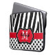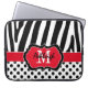 This chic and trendy personalized red, black, and white zebra stripes and polka dots laptop sleeve has text boxes for you to add your name and monogram. ****PLEASE email me if you want a SMALLER size one made up, as selecting it on your own will cause the design and text boxes to slip. If you need help customizing this with your own info, please email niteowlstudio@gmail.com for help.