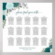 This beautiful 15 table wedding seating chart is designed to make your guests feel special and welcomed at your wedding reception! This seating chart boasts a rustic floral design with hand painted watercolor roses, eucalyptus leaves and garden foliage in shades of teal, turquoise, aqua, and cyan, adding a touch of natural elegance to your special day. The seating assignments for 150 people with 10 seats per table, along with the elegant script calligraphy title, ensure that your guests will easily find their assigned tables.
