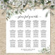 This 15 table wedding seating chart features a rustic hand painted watercolor design with sprigs of eucalyptus leaves, greenery, and foliage in shades of sage and moss green. The elegant script calligraphy title reads: Please find your table, and the names of the couple and wedding date appear at the bottom. Wonderful way to help your guests find their seats while adding elegance and style to your reception. Includes seating assignments for 150 guests with the traditional 10 seats per table.