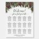 This beautiful 15 table wedding seating chart features a rustic design perfect for an outdoor, winter, or mountain destination wedding. The top has a lavish border with hand painted watercolor pinecones and pine branches in shades of forest green and chestnut brown. The title reads "Welcome! please find your table" written in elegant script calligraphy. There is space for the names of the couple and wedding date. This chart has table assignments for 150 guests with 10 seats per table. Wonderful way to add beauty and charm to your wedding reception while making it easy for your guests to find their seats!