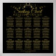This beautiful 15 table seating chart will add style and class to your wedding reception while helping your guests to find their assigned seats. Features elegant gold lettering on a black background with a vintage faux foil gold flourish or filigree border.