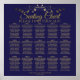 Beautiful 15 table seating chart will make your wedding reception beautiful, and help your guests to find their assigned seats. Features elegant gold lettering on a navy blue background with a vintage faux foil gold flourish or filigree border.