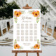 This sunflower and rose floral seating chart will help your guests find their table. It is suitable for a wedding with 15 tables and up to 150 guests.