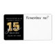 High school or college university class reunion custom color self-adhesive name tag stickers for home printing or handwriting. The design features faux metallic gold balloon numbers and modern script typography for a 15 YEAR CLASS REUNION, the saying REMEMBER ME?, your school name and class year in your choice of background color (shown in black) that you can change in EDIT to your school color. ASSISTANCE: For help with design modification or personalization, contact the designer BEFORE ORDERING via the Zazzle Chat MESSAGE tab below or email makeitaboutyoustore@gmail.com.