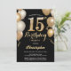 15th Birthday Black and Gold Balloons Confetti Invitation