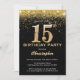 15th Birthday Black and Gold Glitter Confetti Invitation