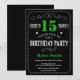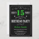 15th Birthday Black and Green Chalkboard Invitation