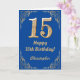15th Birthday Blue and Gold Glitter Frame. For further customization, please click the "Customize it" button and use our design tool to modify this template.