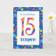 A bright and colorful 15th Birthday Card for a Brother, with striped numbers and a starry border, from a digital design by Judy Adamson. You can change the inside message if you wish.