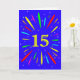 An explosive 15th birthday card! What a wonderful way to send birthday greetings. The number 15 in bright yellow with an explosion of bright colors and stars.