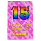 15th Birthday: Fun Pink Hearts Stripes; Rainbow 15 Medium Gift Bag