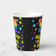 This cheerful and fun birthday themed paper cup design features a large number “15” having a rainbow spectrum gradient inspired pattern. It also features the message “Happy 15th Birthday,”, and an editable name. The background features a multicolored pattern featuring many star shapes with different colors and sizes. Colorful, vibrant paper cups like this might be fun to have at a birthday party/celebration being held to honor somebody’s 15th birthday. [~Z0000540]