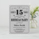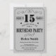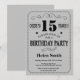 15th Birthday Invitation Black and Silver Gray